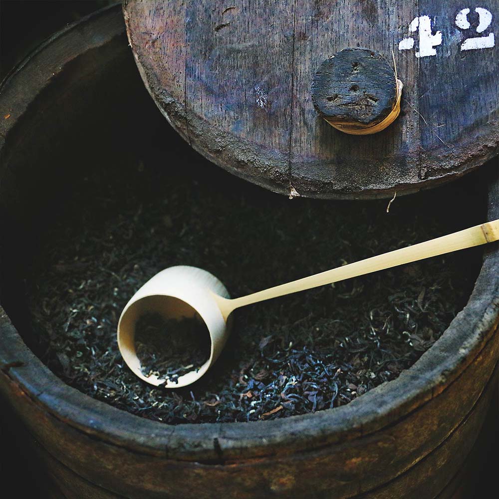 Dirk and Nina take a semi-oxidized, organic oolong tea from Fujian in China (with its complex flavours of dried fruits and its delicate tannins) and mature the leaves for several months in the empty barrels.