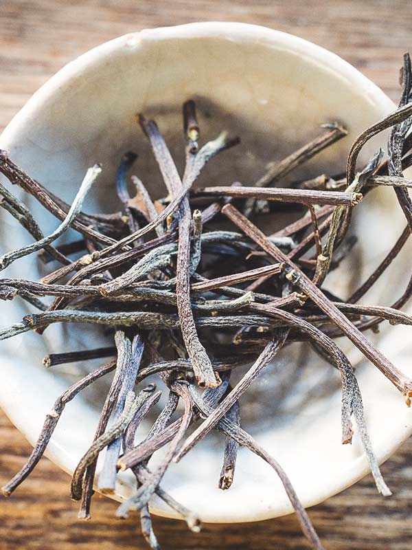 The Antler is picked before the leaf bud has developed - this unique and extraordinary tea is made from the tender growing stem. The Silver Tip is the mature leaf bud, plucked just at the point before it would open to the spring flush- the first set of new leaves. And the White Peony is those three first open leaves - the first flush. None of the teas are processed in any way - just dried - so they retain the freshest, softest flavours.