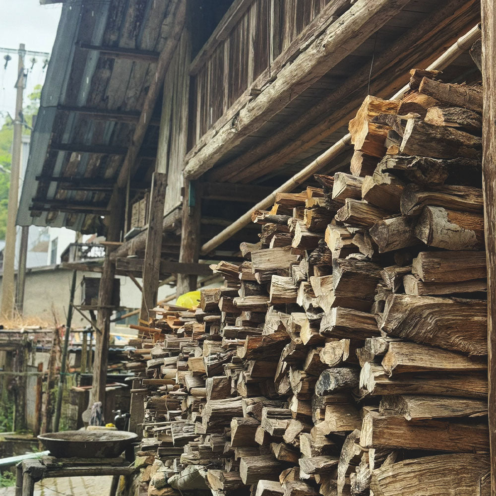 The smoky scent comes from the traditional method of smoking the tea over pine wood in the Wuyi Mountains of Fujian China. This is not a flavouring or an oil that you might find in industrial bags, but a real smoked tea beautifully crafted.