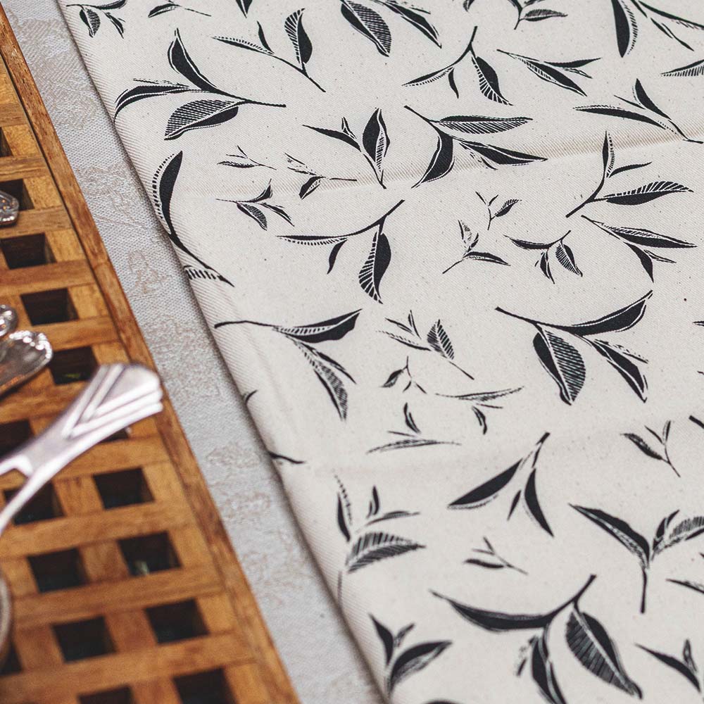 This beautiful tea leaf design fabric arrives folded with a cotton string. The idea is that you might use it to wrap other presents in- like a teapot or some lovely loose leaf tea.