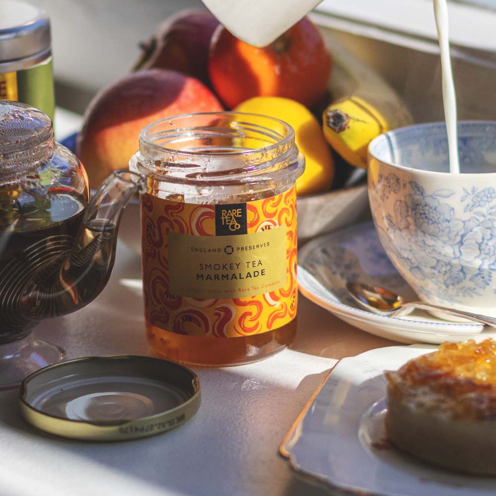 A golden and fragrant fruit preserve made from candied Seville oranges, warmed with the smoky flavours of our rare Malawi Mountain Moto, a black tea uniquely smoked over guava leaves at Satemwa Estate in the Shire Highlands of Malawi.